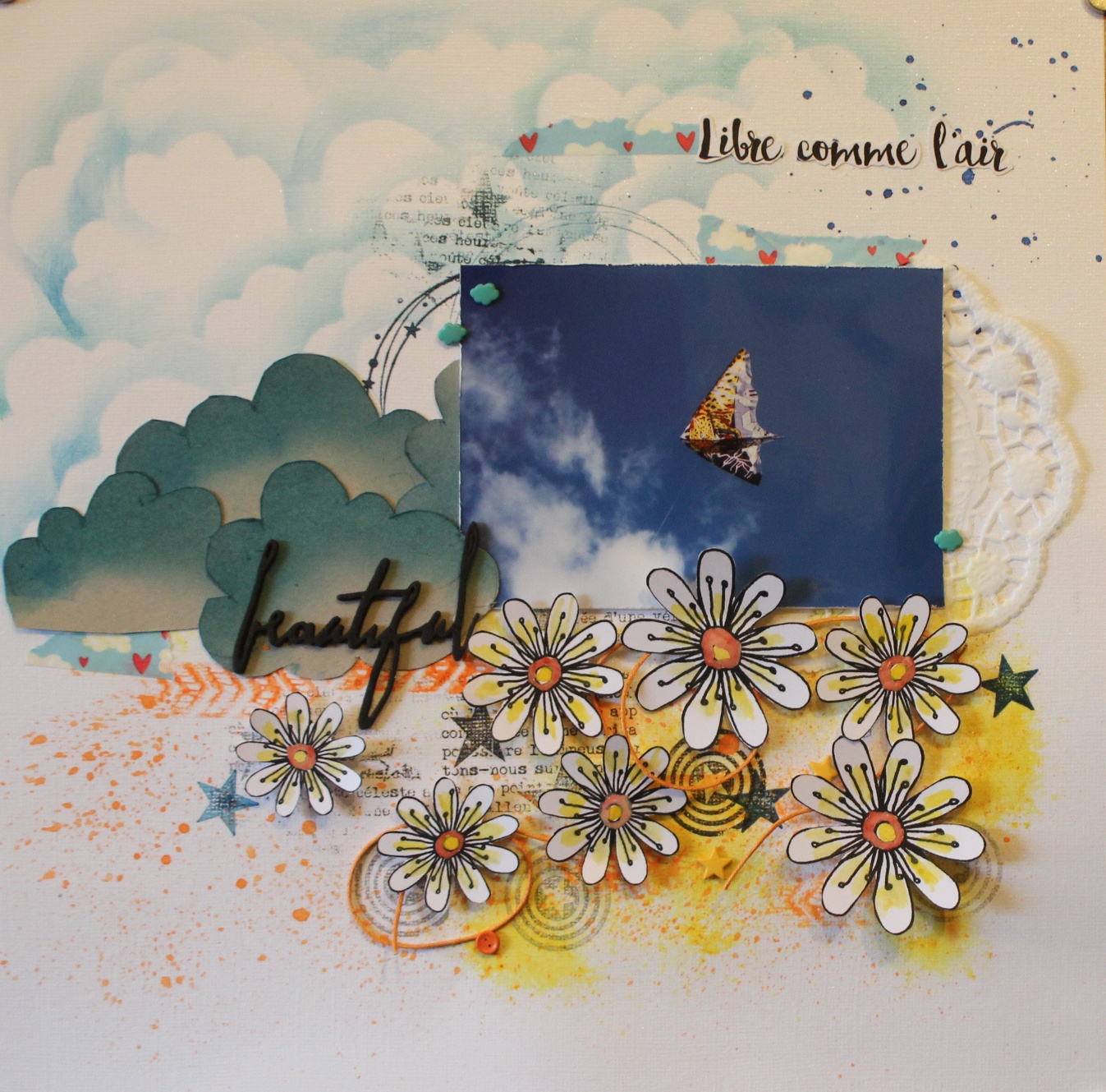 Également dans cette commande un petit tampon Carabelle "chevrons" et un pad Distress Hickory smoke. Et une petite surprise de la Fabrik, un chipboard en forme de fleur avec un gentil petit mot. On apprécie toujours.....c'est vrai que j'ai ma période Fabrik à Scrap ces temps-ci, mais souvent femme scrappeuse varie !!!! On nous tente tellement avec des nouveautés plus belles les unes que les autres. Pas vrai ?